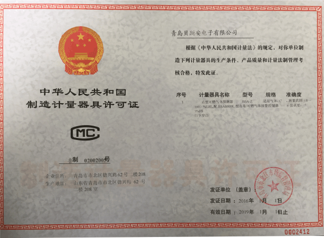 我公司是青島市具有國家質量技術監(jiān)督部門頒發(fā)的計量器具生產(chǎn)許可證的生產(chǎn)企業(yè);獲得國家防爆電氣產(chǎn)品質量監(jiān)督檢驗中心頒發(fā)的防爆合格證;獲得國家公安部消防產(chǎn)品合格評定中心頒發(fā)的消防產(chǎn)品形式認可證書。